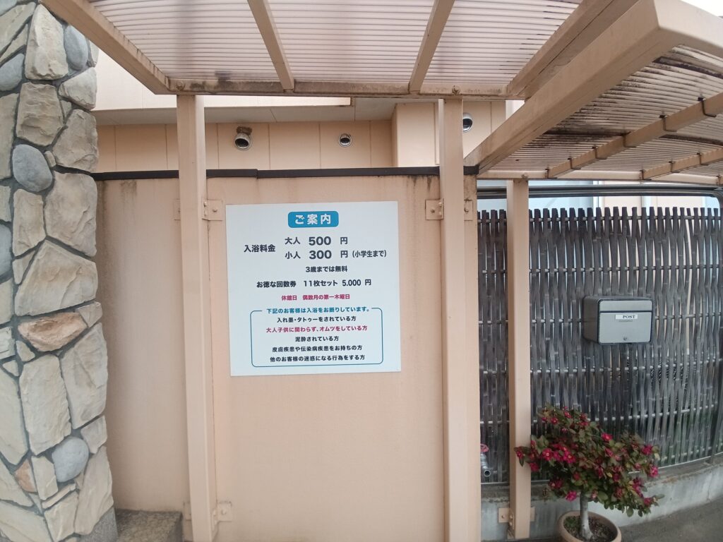 入口で真っ先に目に入ったのが料金表示——大人500円。 銭湯と変わらない価格です。最近の日帰り温泉が1,000円超えも珍しくない中、この価格設定は正直、入る前から少し半信半疑でした。「源泉かけ流しで500円って、本当にちゃんとした温泉なのかな?」と。