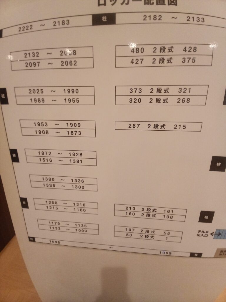 ロッカー番号0001から2222まである